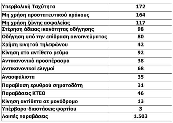 βεβαιώθηκαν (2.502) παραβάσεις Κ.Ο.Κ εκ των οποίων: