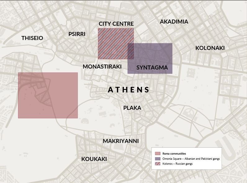 Στα δυτικά προάστια της Αθήνας, κυρίως μέσα σε κοινότητες Ρομά, η αστυνομία έχει εντοπίσει στρατιωτικά εκρηκτικά, διάφορους τύπους πυρίτιδας και καραμπίνες, που πιστεύεται ότι χρησιμοποιούνται σε ληστείες και εκβιασμούς.