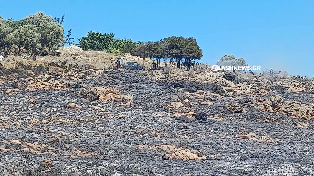Δυνάμεις της πυροσβεστικής παραμένουν ακόμα στο σημείο καθώς είναι ορατός ο κίνδυνος αναζωπύρησης της φωτιάς λόγω των ισχυρών ανέμων που πνέουν στην περιοχή.