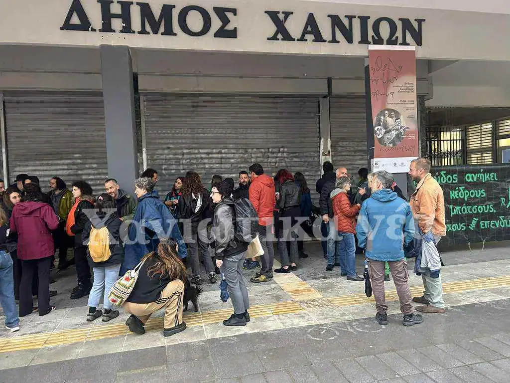 Το απόγευμα της Παρασκευής πραγματοποιήθηκε συγκέντρωση διαμαρτυρίας έξω από το δημαρχείο Χανίων.