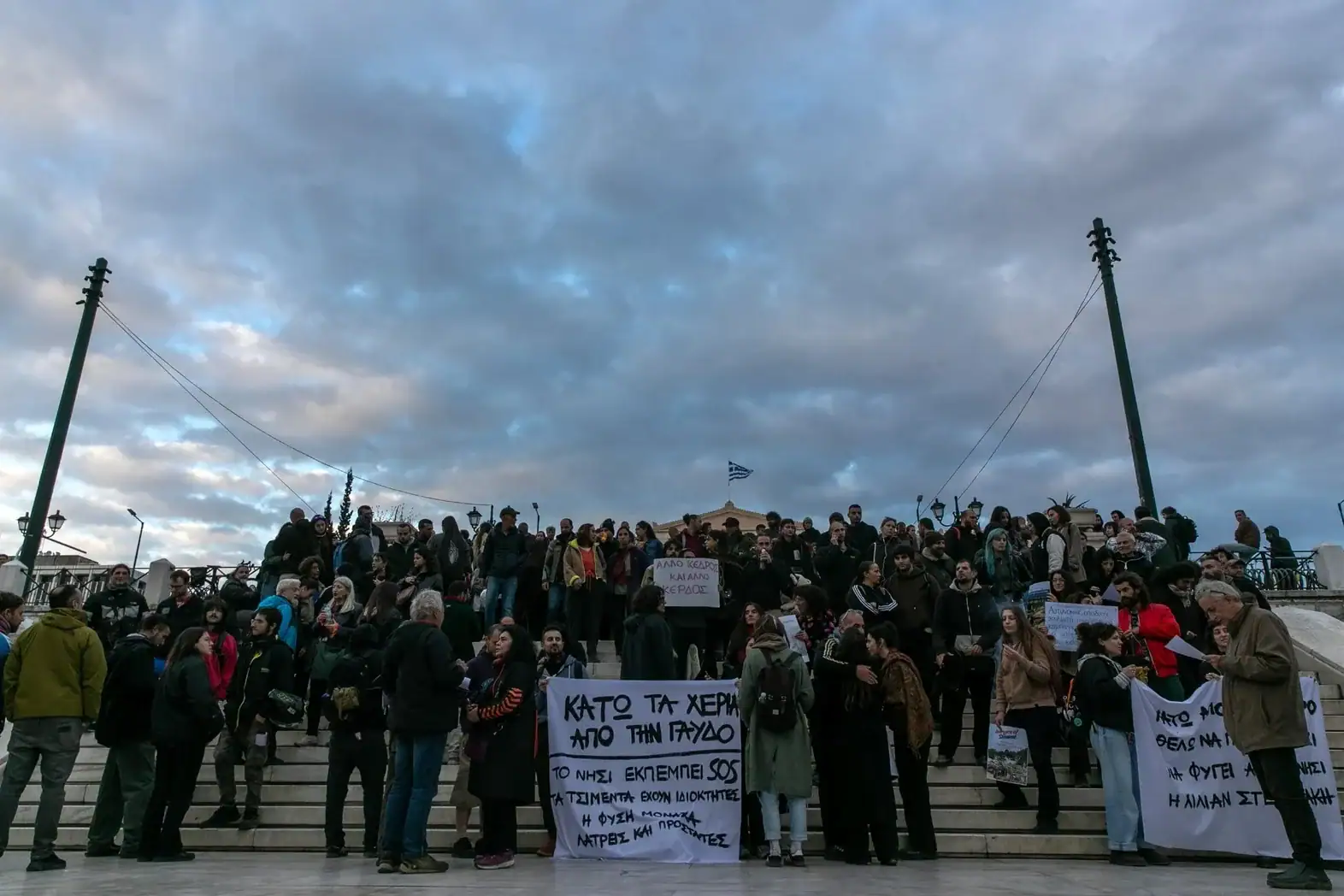 Το απόγευμα της Πέμπτης έγινε μάλιστα διαμαρτυρία στο Σύνταγμα, μπροστά στη Βουλή με συνθήματα, όπως «Άλλο το κέδρος άλλο το κέρδος», «Η Γαύδος δεν είναι προς πώληση».