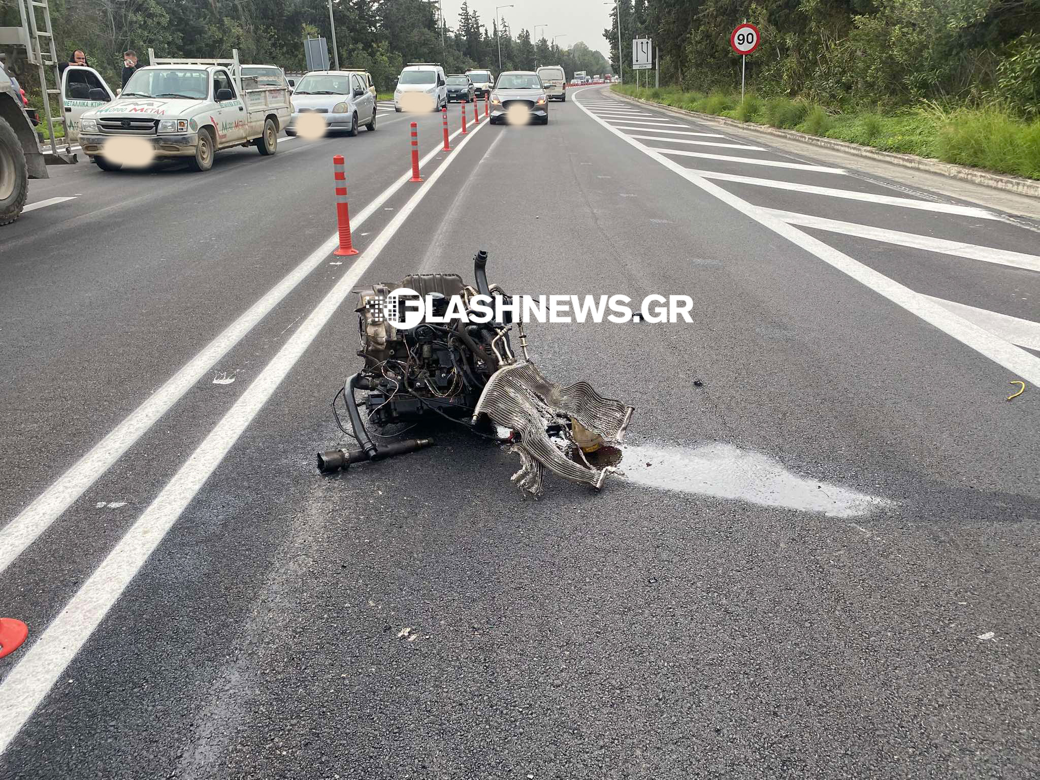 Το δυστύχημα συνέβη στο ύψος του κόμβου του Πλατανιά μετά από σύγκρουση αυτοκινήτων.
