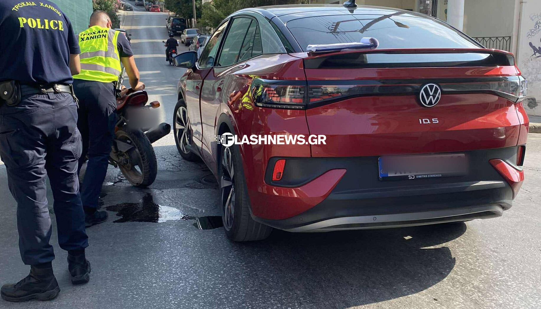 Το τροχαίο συνέβη στη συμβολή των οδών Τσόντου Βάρδα και Κνωσού όταν ένα αυτοκίνητο συγκρούστηκε με μηχανή μεγάλου κυβισμού.
