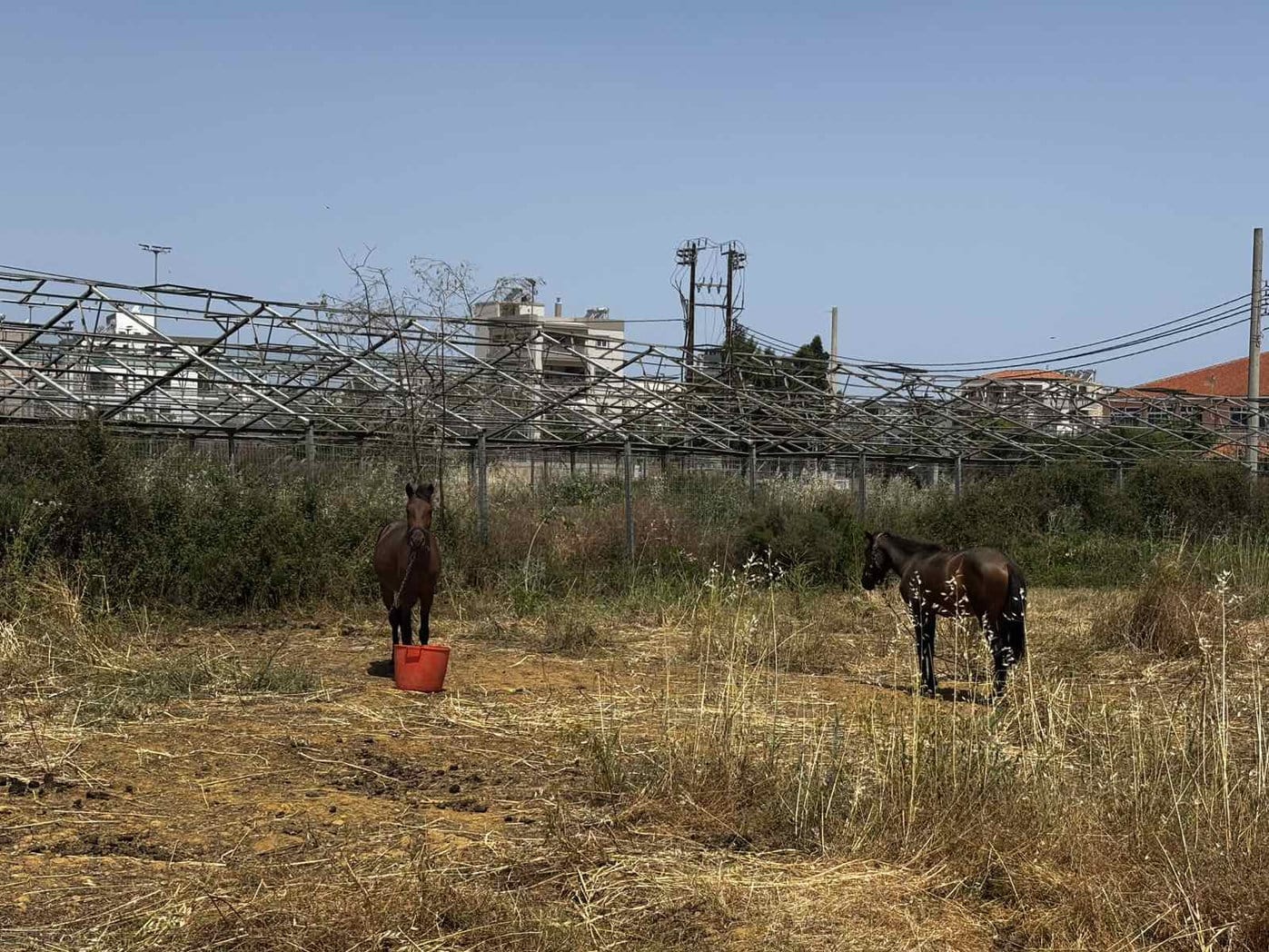 Στο συγκεκριμένο χωράφι βρίσκονται δυο άλογα σε αυτές τις συνθήκες.