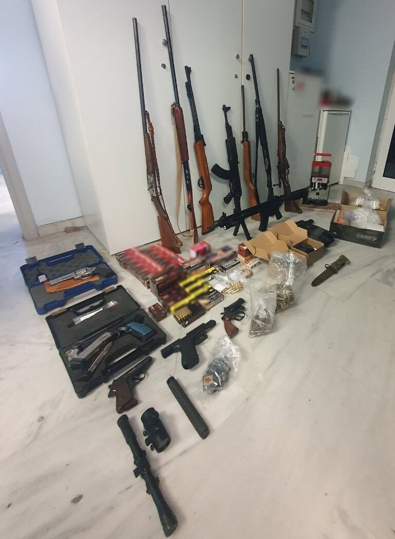 Κατά την διάρκεια των ερευνών βρέθηκε ολόκληρο οπλοστάσιο ενώ οι δύο άντρες που έχουν συγγενική σχέση συνελήφθησαν κατηγορούμενοι για παραβάσεις της νομοθεσίας περί όπλων και βεγγαλικών και πυροτεχνημάτων.
