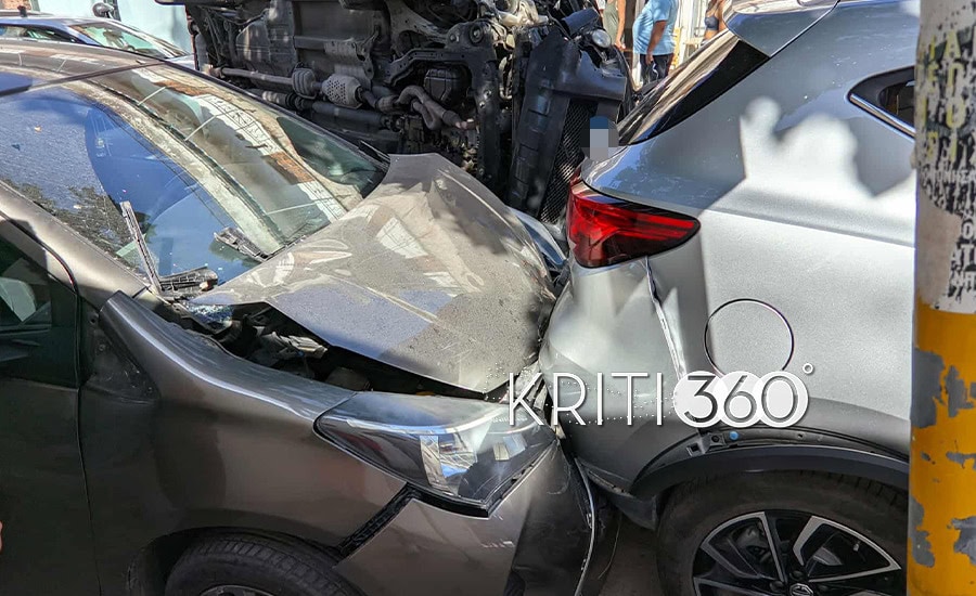 Συνολικά στο ατύχημα υπέστησαν ζημιές πέντε οχήματα, τρία εκ των οποίων ήταν σταθμευμένα.