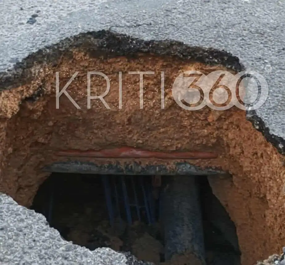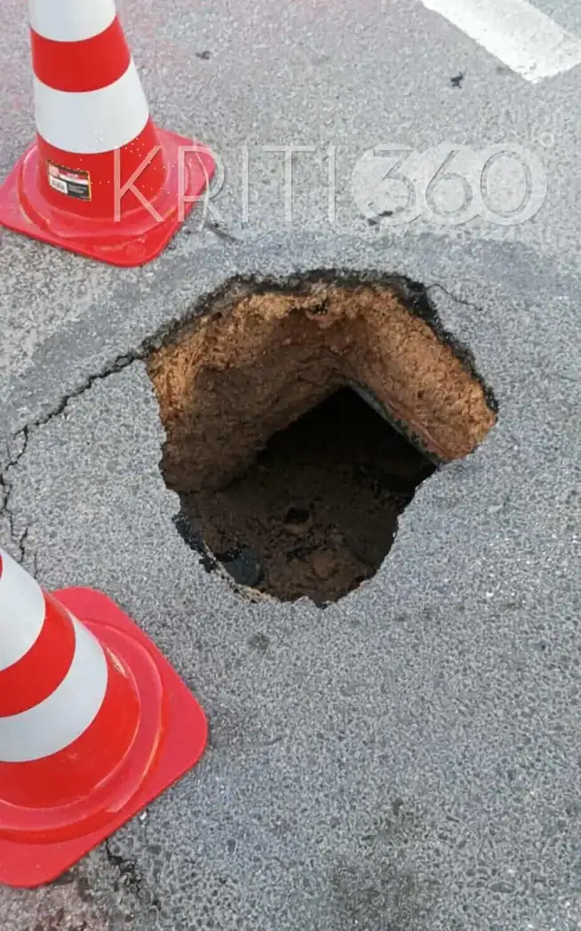 Ωστόσο, όπως φαίνεται και στις φωτογραφίες του kriti360, το βάθος της είναι μεγάλο, ενώ στο εσωτερικό διακρίνεται σημαντικό κενό, γεγονός που ενισχύει τους φόβους για ενδεχόμενη καθίζηση μεγαλύτερου τμήματος του οδοστρώματος.