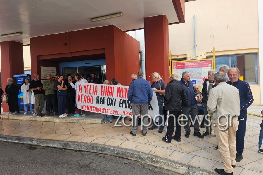 Ξεκίνησε σήμερα, Πέμπτη 6 Νοεμβρίου, η πανυγειονομική απεργία στο Νοσοκομείο Χανίων, στο πλαίσιο της 48ωρης κινητοποίησης που προκήρυξε η Ομοσπονδία Ενώσεων Νοσοκομειακών Γιατρών Ελλάδας (ΟΕΝΓΕ) για τις 6 και 7 Νοεμβρίου. Οι γιατροί και νοσηλευτές συγκεντρώθηκαν από το πρωί στην κεντρική είσοδο του νοσοκομείου, προκειμένου να στείλουν μήνυμα για την οριακή κατάσταση του Εθνικού Συστήματος Υγείας και την ανάγκη άμεσων προσλήψεων προσωπικού.
