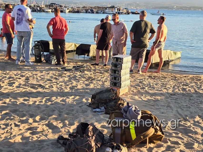 Με μερικές εξάδες μπύρες και τραπέζια μέσα στη θάλασσα, Γερμανοί στρατιωτικοί νατοϊκής δύναμης του Πεδίου Βολής Κρήτης, οργάνωσαν την Κυριακή το απόγευμα μια μικρή γιορτούλα στο Μαράθι, προκαλώντας την περιέργεια μικρών και μεγάλων, καθώς τόσο η παραλία όσο και οι ταβέρνες ήταν γεμάτες κόσμο.
