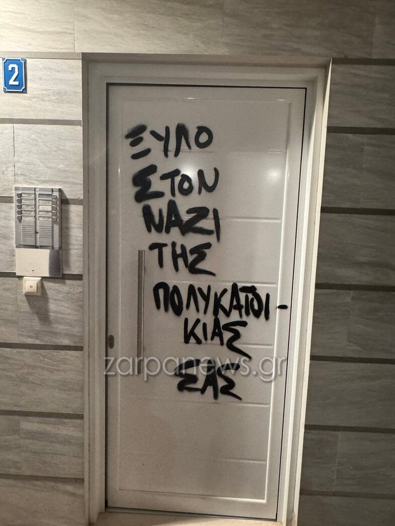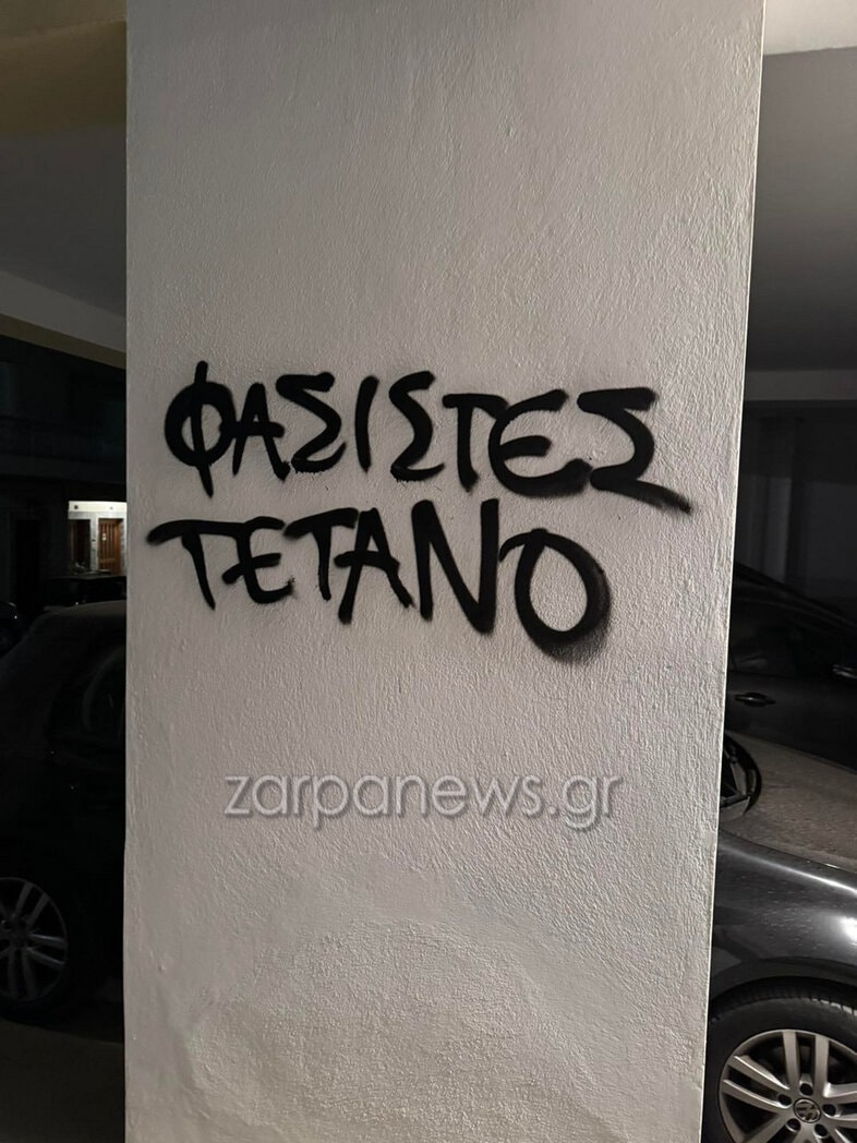 Σύμφωνα με καταγγελία που δέχτηκε το zarpanews.gr, ένοικος της πολυκατοικίας φώναξε από το μπαλκόνι του τη λέξη «Ελλάς» την ώρα που περνούσε η πορεία. Λίγες ώρες αργότερα, όπως καταγγέλλει ο ίδιος, άγνωστοι προκάλεσαν φθορές, γράφοντας συνθήματα με μαύρη μπογιά σε τοίχους και πόρτες της πολυκατοικίας.
