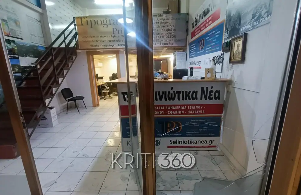 Στόχος διαρρηκτών έγιναν τα γραφεία των επιχειρήσεων Αναστασάκη στα Χανιά, στην οδό Υψηλαντών όπου στεγάζεται και το kriti360.gr, η εφημερίδα «Σελινιώτικα Νέα» και το tipografo print, τα ξημερώματα της Παρασκευής.