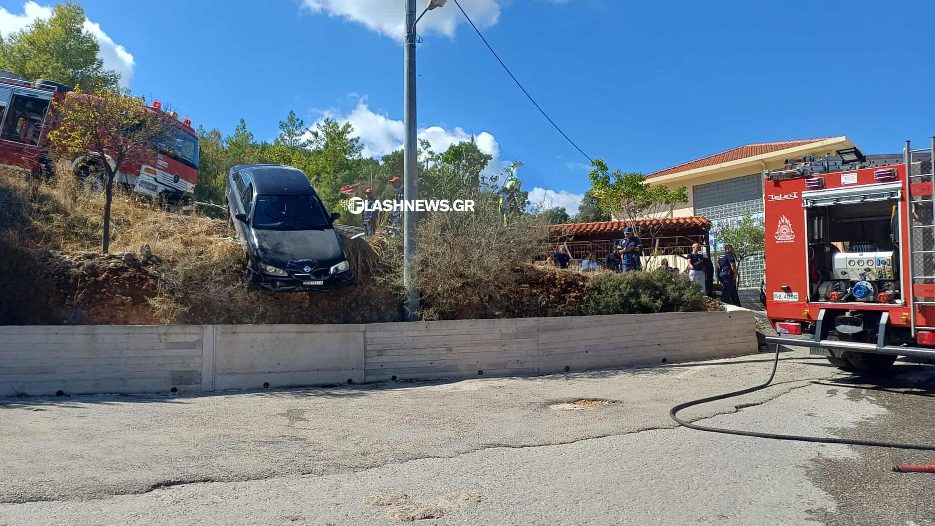 Αναστάτωση επικράτησε το μεσημέρι της Πέμπτης δίπλα από το δημοτικό σχολείο στα Νεροκούρου Χανίων, όταν ένα ΙΧ αυτοκίνητο κάτω από συνθήκες που διερευνώνται εξετράπη της πορείας του και έπεσε από ύψωμα που βρίσκεται στο σημείο.