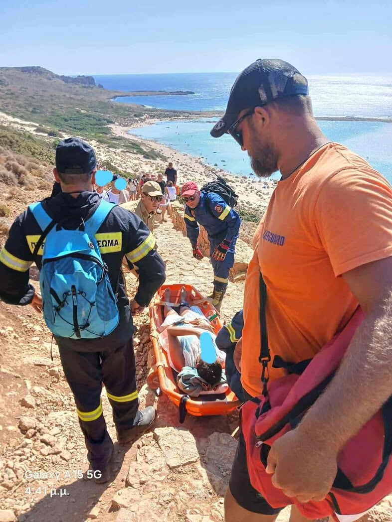 Χανιά: Κατέρρευσε τουρίστρια στον Μπάλο (φωτο)