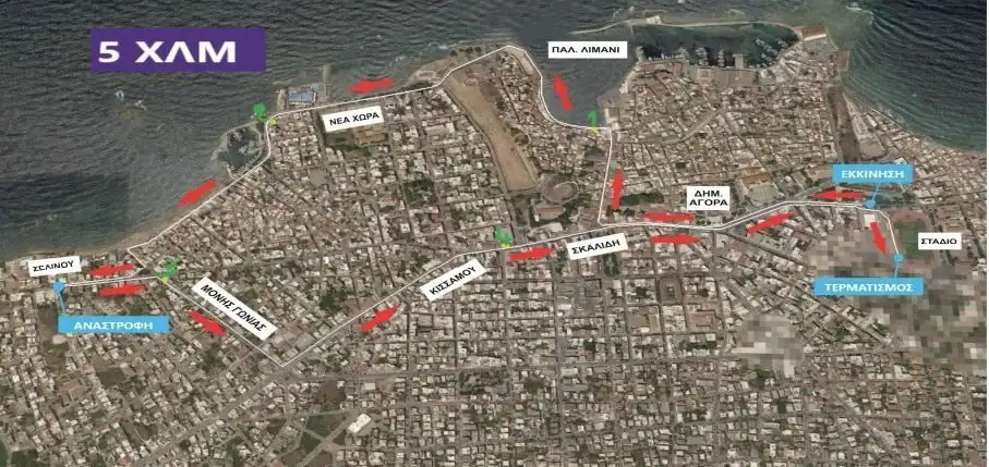 Έναρξη αγώνων: Αφετηρία – Τερματισμός: Το Εθνικό Αθλητικό Κέντρο (Ε.Α.Κ.) Χανίων