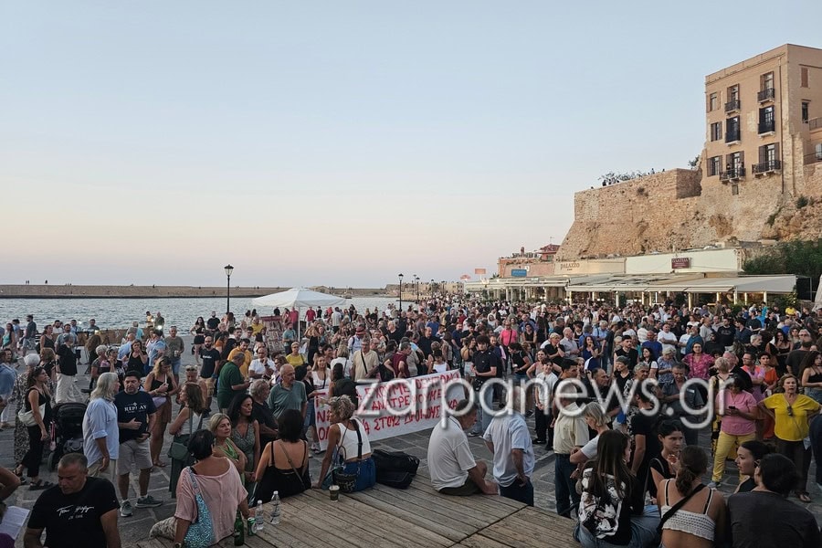 Στα Χανιά, η συγκέντρωση πραγματοποιήθηκε χθες το βράδυ στην παλτεία Γιαλί Τζαμί, με τη συμμετοχή εκατοντάδων πολιτών.