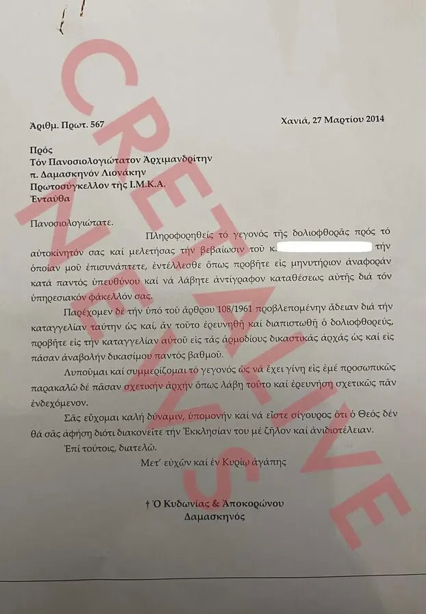 Υπάρχουν αναφορές για κληρικούς αλλά δεν είναι ακόμα ξεκάθαρο, θα πρέπει να παραδοθεί η δικογραφία σήμερα στον εισαγγελέα για να δούμε σε ποια άτομα θα ασκηθεί ποινική δίωξη».