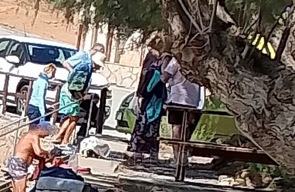 Λίγα λεπτά αργότερα ασθενοφόρο έφτασε στο σημείο και τον μετέφερε στο Νοσοκομείο Χανίων για περαιτέρω εξετάσεις.