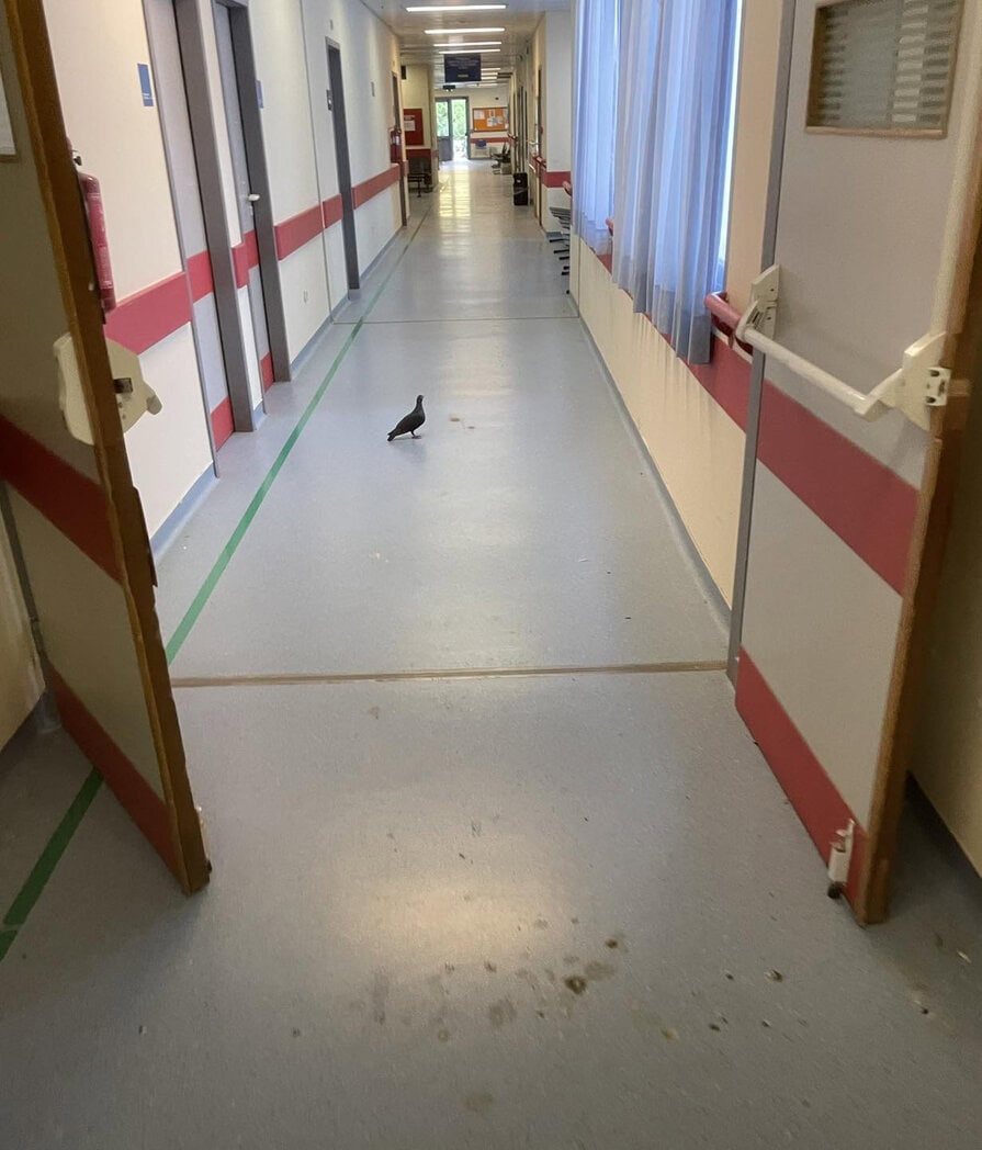 Όπως φαίνεται στις παρακάτω φωτογραφίες και περιγράφει και η ανάρτηση περιστέρια «τρυπώνουν» μέσα στο νοσοκομείο αφήνοντας πίσω τους κουτσουλιές ακόμη και αυγά σύμφωνα με τις εικόνες.