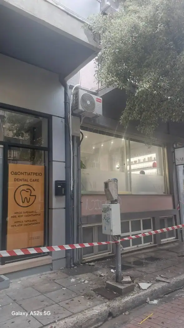 Όπως αναφέρει αναγνώστρια του PARAKRITIKA.GR, τα κομμάτια προέρχονταν από μπαλκόνι πολυκατοικίας και ήταν ευτύχημα που εκείνη τη στιγμή δεν περνούσε κάποιος από κάτω, ενώ, όπως βλέπετε στις σχετικές φωτογραφίες, υπάρχει και οδοντιατρείο που θα μπορούσε να βγαίνει ή να μπαίνει μέσα οποιοσδήποτε, ενώ ακριβώς δίπλα κατάστημα περιποίησης νυχιών.