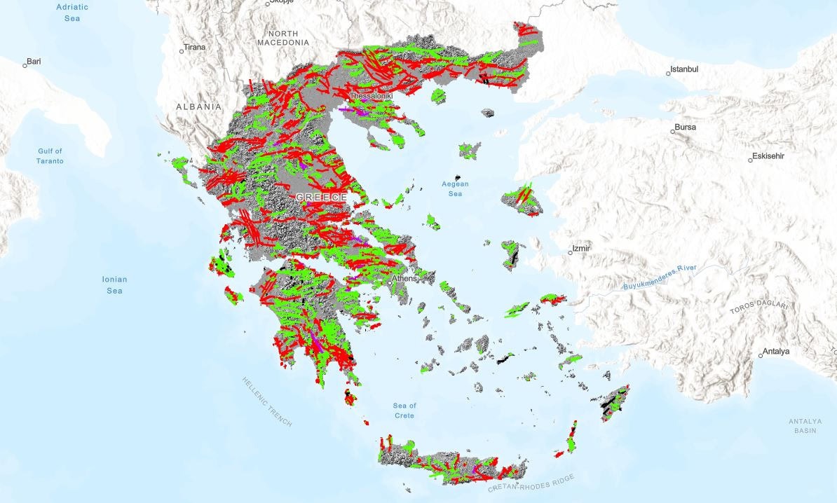 Χάρτη που καταγράφει όλα τα τεκτονικά ρήγματα κάθε μεγέθους στη χώρα μας, κατάρτισαν επιστήμονες του Εθνικού Αστεροσκοπείου Αθηνών μαζί με συναδέλφους τους τη Νέα Ζηλανδία, με τη συνδρομή του Ελληνικού Κτηματολογίου.