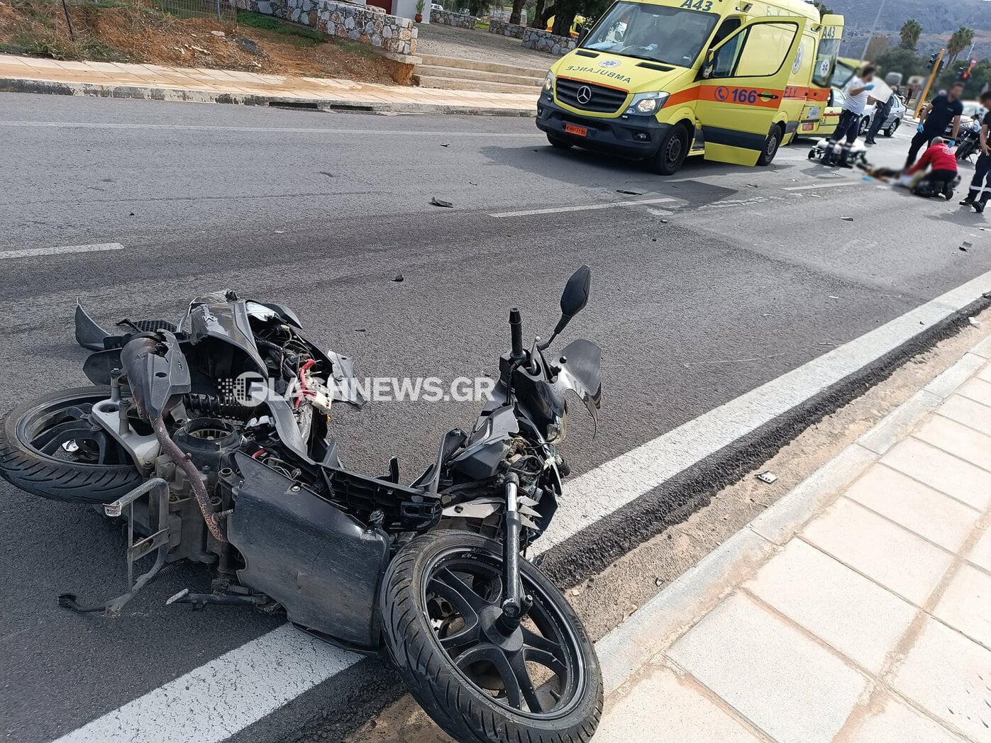 Από τη σφοδρότητα της σύγκρουσης, η γυναίκα οδηγός του δικύκλου έπεσε πάνω στο παρμπρίζ του οχήματος, ενώ στη συνέχεια κατέληξε στο οδόστρωμα, με αποτέλεσμα τον σοβαρό τραυματισμό της.