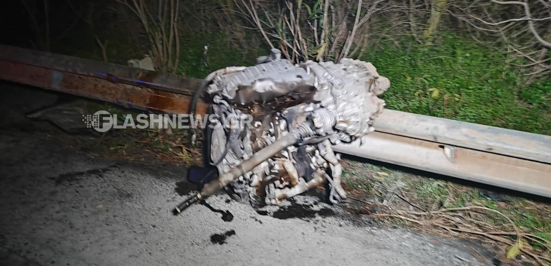 Όμως το όχημα – όπως φαίνεται από τις φωτογραφίες – έχει υποστεί τεράστιες ζημιές με τον κινητήρα να έχει εκτιναχθεί εκτός του χώρου της μηχανής.