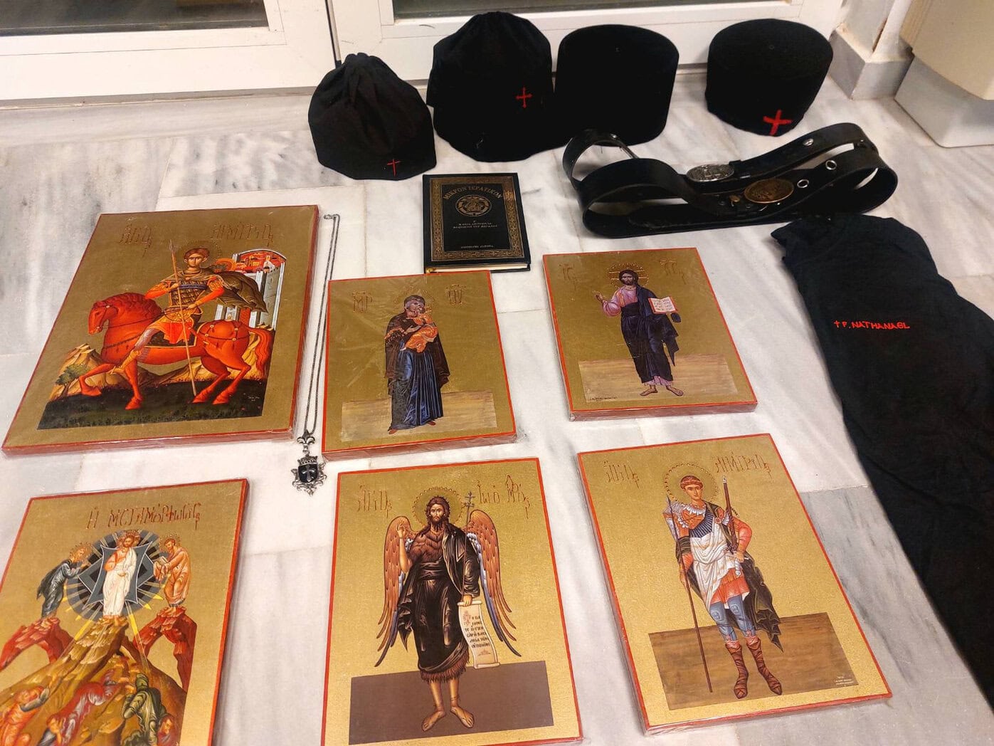 - Είδη ένδυσης ιερέα (ράσο, ιερατικά καλπάκια-καπέλα, πετραχήλι, δερμάτινες ζώνες μοναχού με εκκλησιαστικά σύμβολα κ.α)