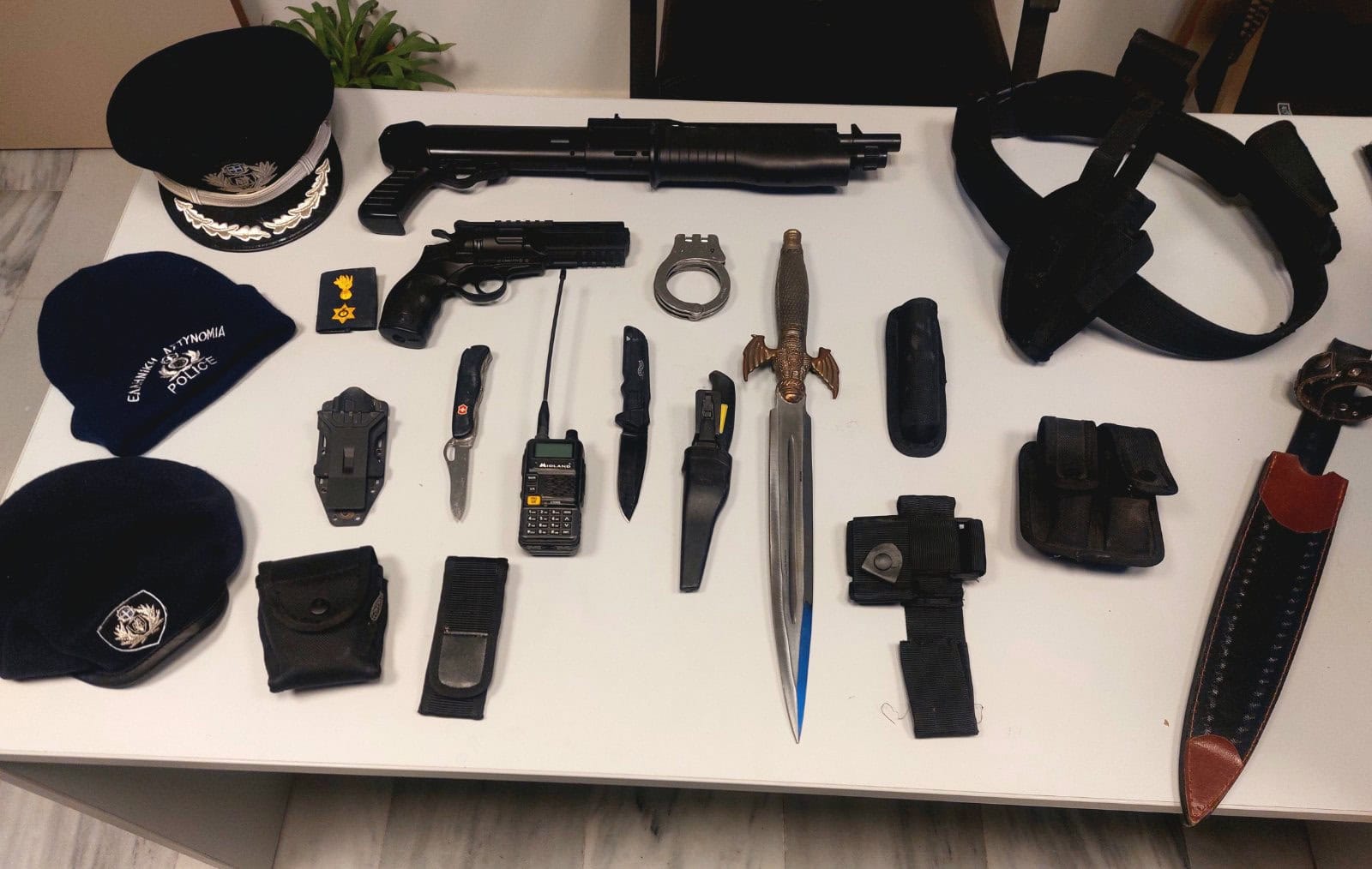 - Ένα αστυνομικό πηλίκιο και (2) αστυνομικά τζόκει, με διακριτικά της ΕΛ-ΑΣ