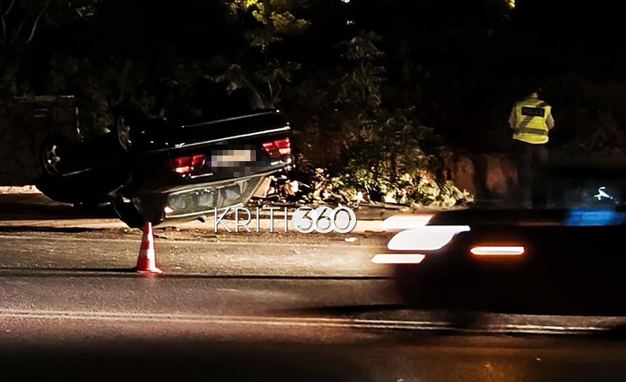 Σύμφωνα με το kriti360, νεαρός οδηγός Ι.Χ. που κινούνταν στον δρόμο λίγο πριν από τα μεσάνυχτα, έχασε τον έλεγχο του οχήματός του, με αποτέλεσμα αυτό να ανατραπεί.