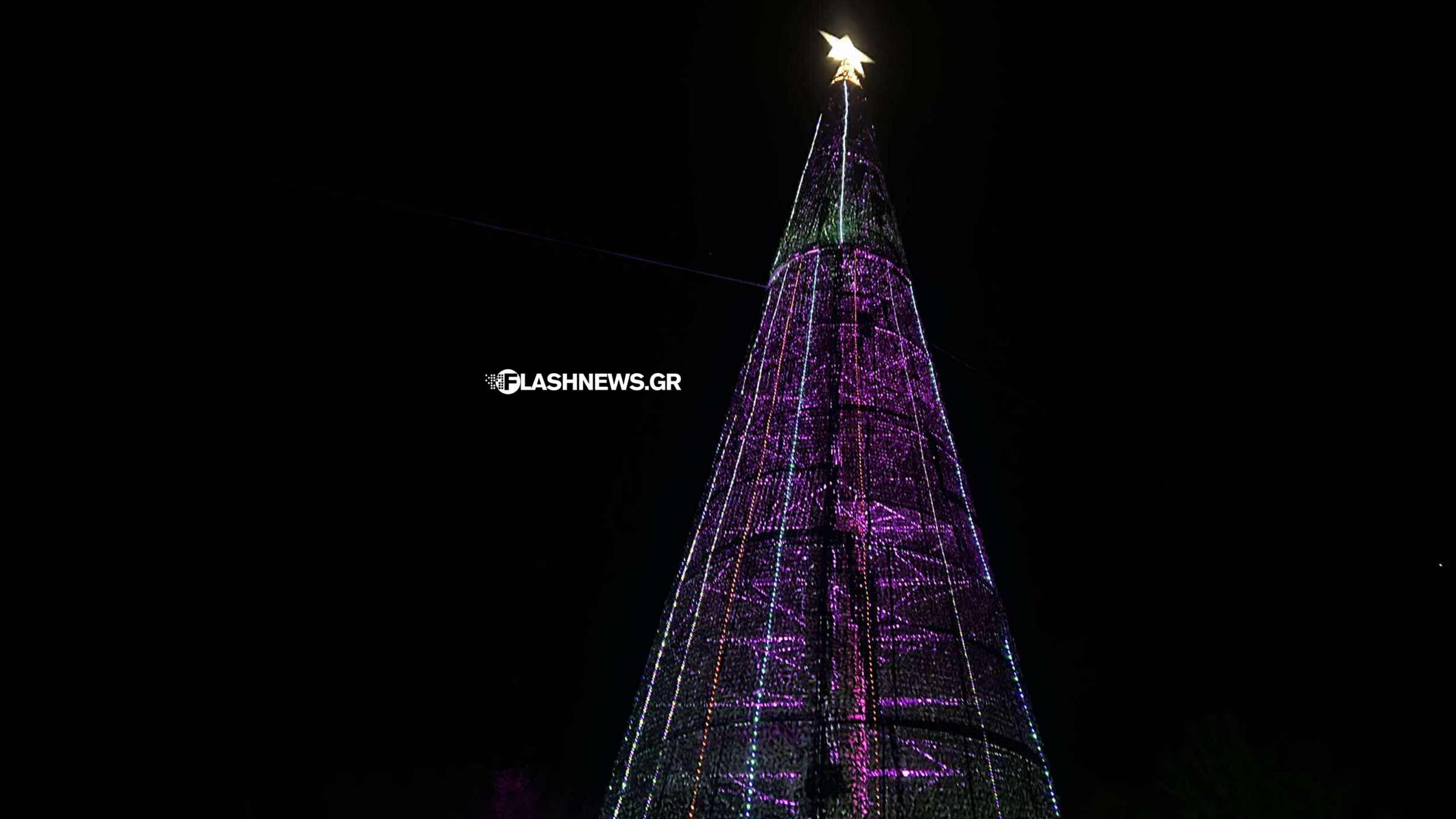 Χανιά: Tο μεγαλύτερο δέντρο στην Ελλάδα – ίσως και στην Ευρώπη, σύμφωνα με τους διοργανωτές, φωτίστηκε στον Ομαλό (φωτο – video)