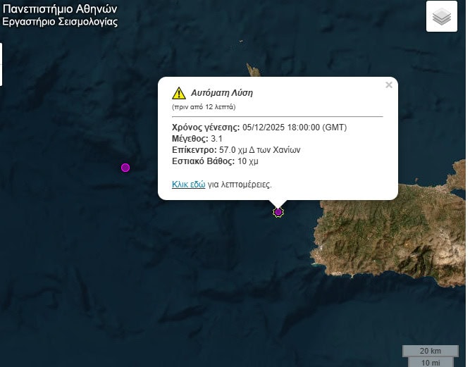 Δύο σεισμοί μέσα σε δύο ώρες στα Χανιά