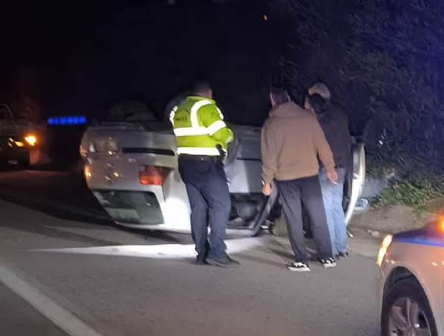 Χανιά: Αυτοκίνητο τούμπαρε στην Εθνική (φωτο)