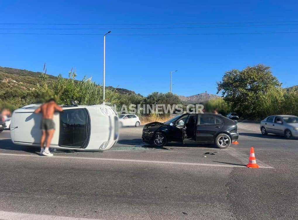 Σύγκρουση δυο αυτοκινήτων εκ των οποίων το ένα ενοικιαζόμενο στον κόμβο της εθνικής οδού
