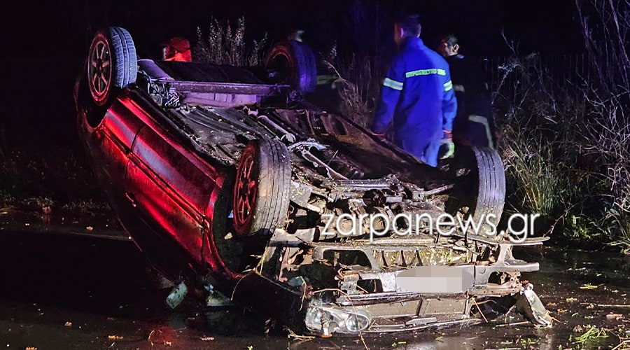 Χανιά: Αναποδογύρισε αυτοκίνητο τη νύχτα (φωτο)