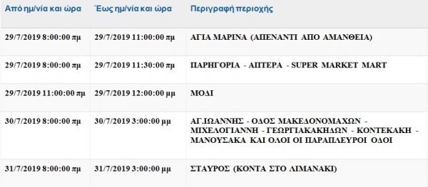 Δείτε αναλυτικά τις περιοχές και τις ώρες κατά τις οποίες θα διακοπεί η ηλεκτροδότηση.